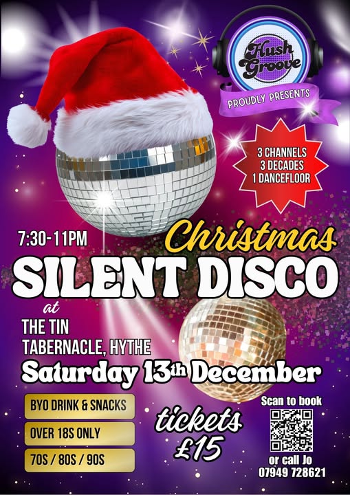 We’re doing it all over again! The HushGroove Christmas Silent Disco is happening on Saturday 13th December at the Tin Tabernacle, Hythe!